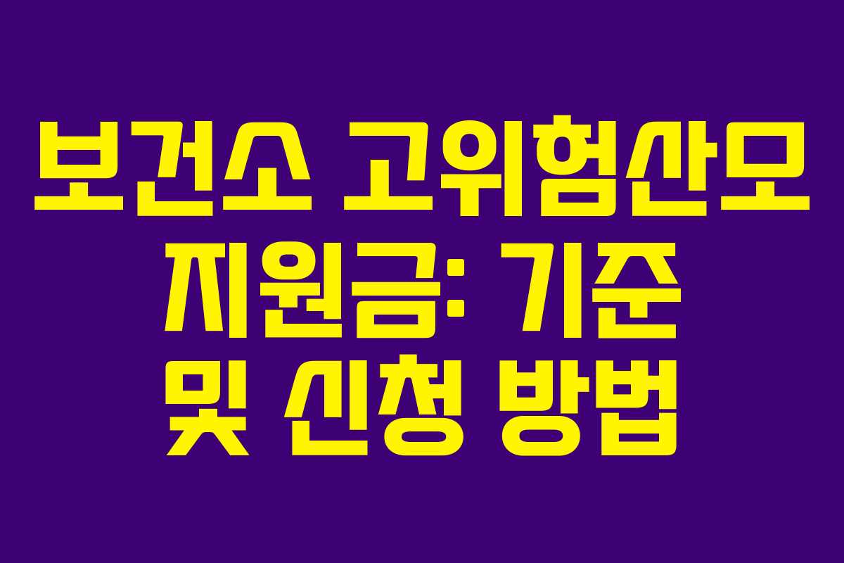보건소 고위험산모 지원금: 기준 및 신청 방법