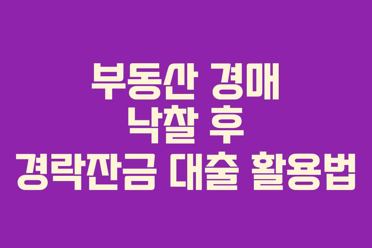 경락잔금대출은 경매에서 낙찰받은 부동산을 담보로 대출을 받는 방식입니다. 낙찰 후에는 이 대출을 통해 잔금을 지급할 수 있습니다. 대출금리는 은행마다 다를 수 있으며, 대출 한도는 감정가의 70% 또는 낙찰가의 80% 중 낮은 금액으로 설정됩니다.