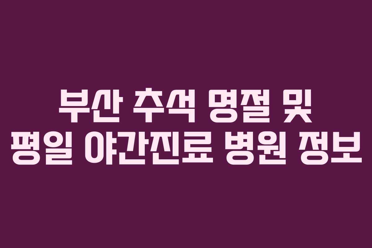 부산에서 추석 연휴나 평일에 야간진료를 받을 수 있는 병원을 찾고 계신가요? 치과, 안과, 가정의학과, 피부과 등 여러 병원 정보를 안내드립니다. 각 병원의 운영시간, 위치, 전화번호 등의 자세한 내용도 포함되어 있습니다.