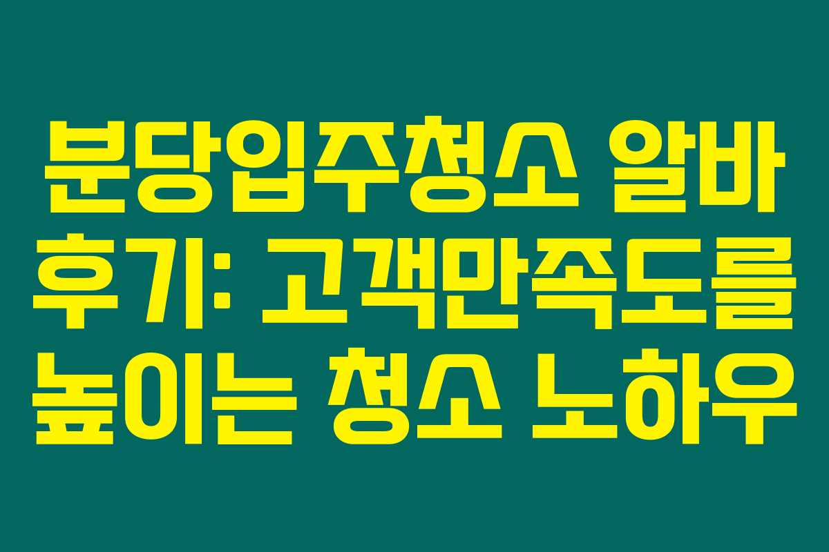분당입주청소 알바 후기: 고객만족도를 높이는 청소 노하우