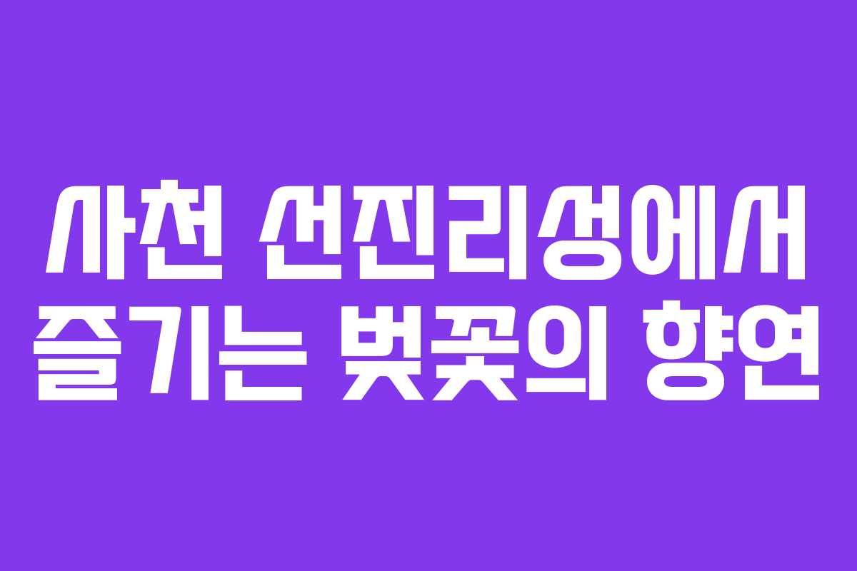 사천의 벚꽃 시즌에는 다양한 이벤트와 프로그램이 진행될 수 있습니다. 이러한 행사에 참여하여 더욱 특별한 경험을 쌓는 것도 좋은 방법입니다. 2026년에는 벚꽃을 주제로 한 다양한 문화 행사가 계획될 가능성이 높으니, 미리 정보를 확인하고 참여하면 좋습니다.