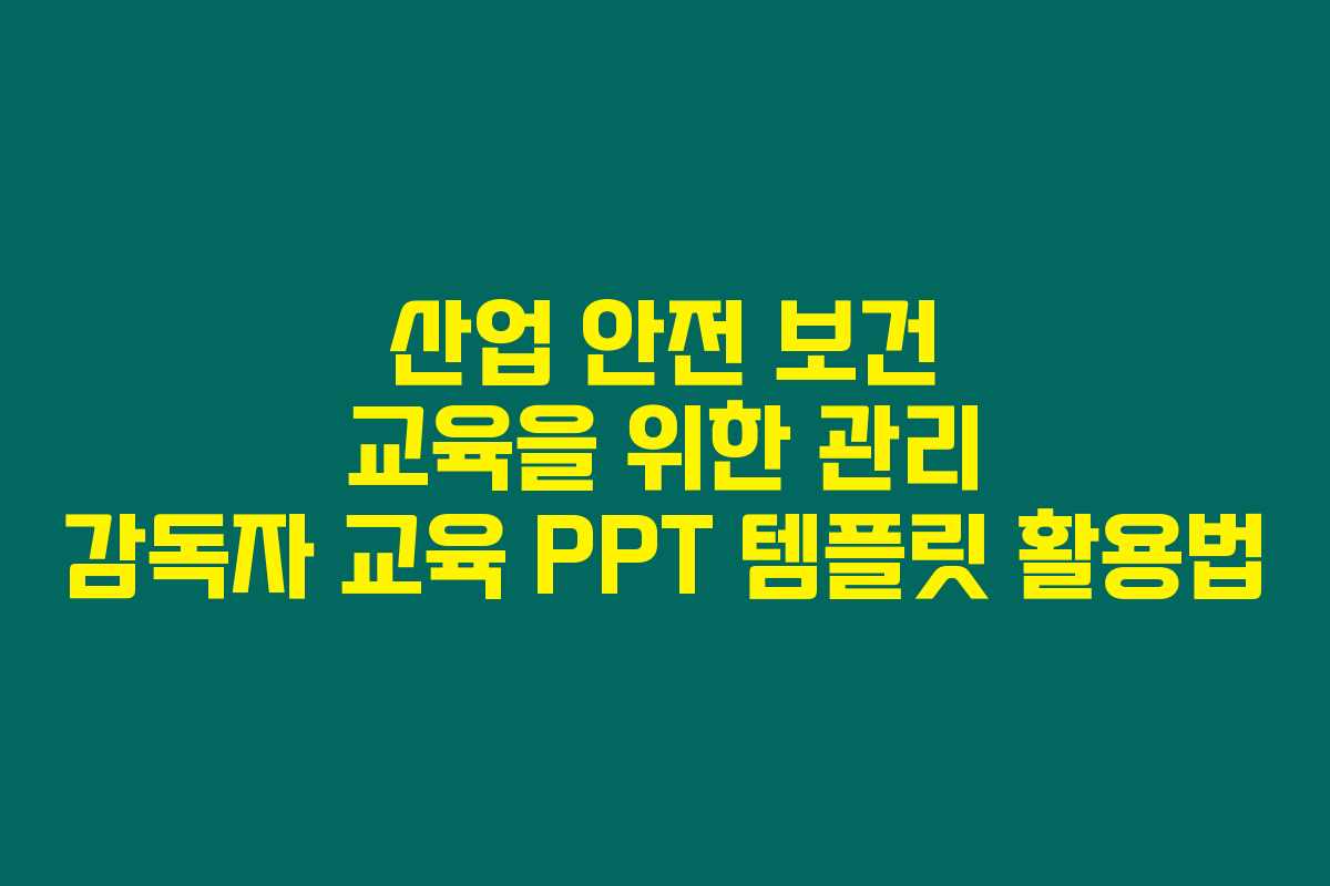 관리 감독자 교육 PPT 템플릿은 안전 교육의 효과성을 높이기 위한 다양한 구성 요소와 디자인을 갖추고 있어요. 교육의 효과를 극대화하고, 참가자들에게 기억에 남는 학습 경험을 제공할 수 있습니다. 이러한 정보를 바탕으로 안전 교육 PPT 템플릿 활용으로 더 안전한 근무 환경 조성을 위해 모두가 함께 노력했으면 좋겠어요.