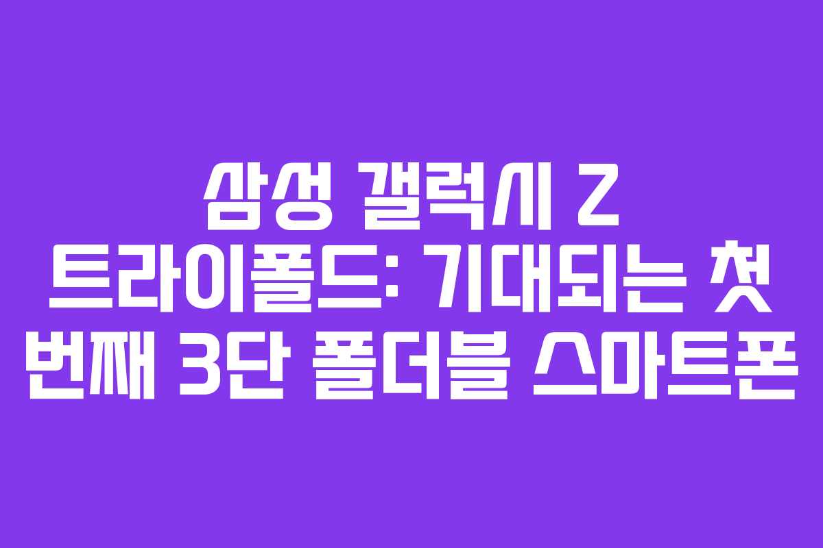 삼성전자의 새로운 혁신, 갤럭시 Z 트라이폴드 모델이 올해 출시될 예정입니다. 이 제품은 3개의 디스플레이를 접어 사용할 수 있는 대화면 폴더블 스마트폰으로, 많은 이들의 기대를 모으고 있습니다. 이번 글에서는 갤럭시 Z 트라이폴드의 특징, 스펙, 출시일에 대한 정보를 자세히 살펴보겠습니다.