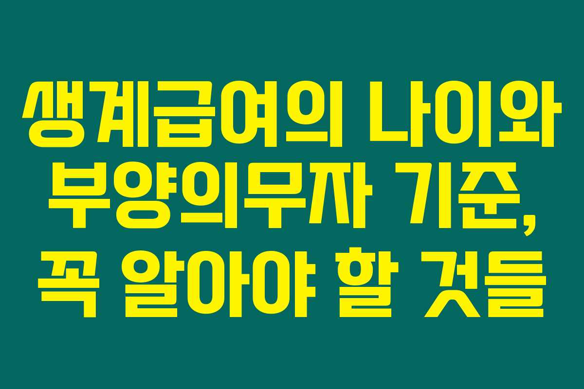 생계급여는 많은 사람들에게 꼭 필요한 지원이에요. 신청하기 전에 나이와 부양의무자 기준에 대해 잘 알아보셔야 해요. 아래를 읽어보시면 생계급여에 관한 정보를 통해 자신의 상황에 맞는 적절한 신청 방법과 도움이 될 수 있는 지원 제도를 이해할 수 있을 거예요.