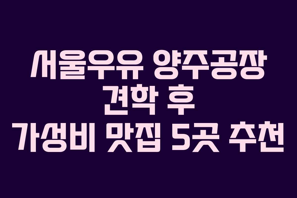 서울우유 양주공장 견학은 아이들에게 유익한 경험일 뿐만 아니라, 가족과의 소중한 추억을 쌓을 수 있는 좋은 기회입니다. 하지만 견학이 끝난 후 아이와 함께 갈 식당을 찾는 것은 쉽지 않은 일입니다. 이번 글에서는 아이와 어른 모두가 만족할 수 있는 양주 지역의 가성비 좋은 맛집 5곳을 소개합니다.