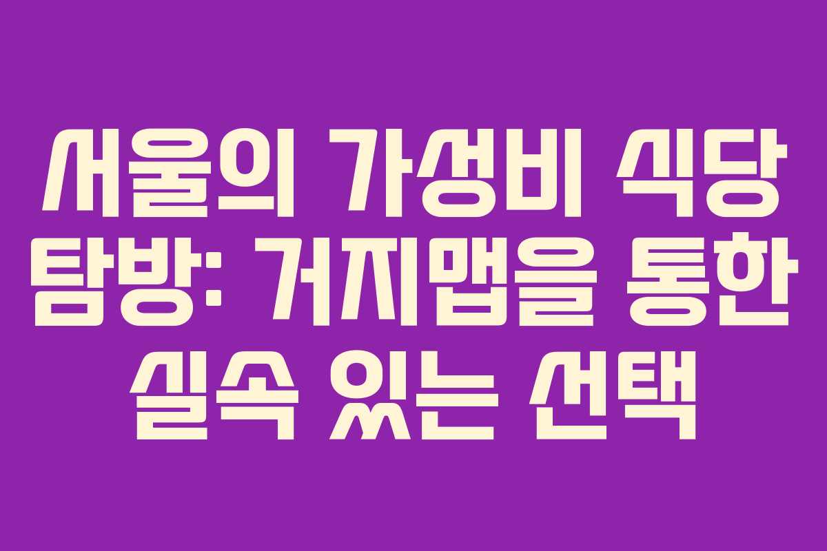 서울의 가성비 식당 탐방: 거지맵을 통한 실속 있는 선택