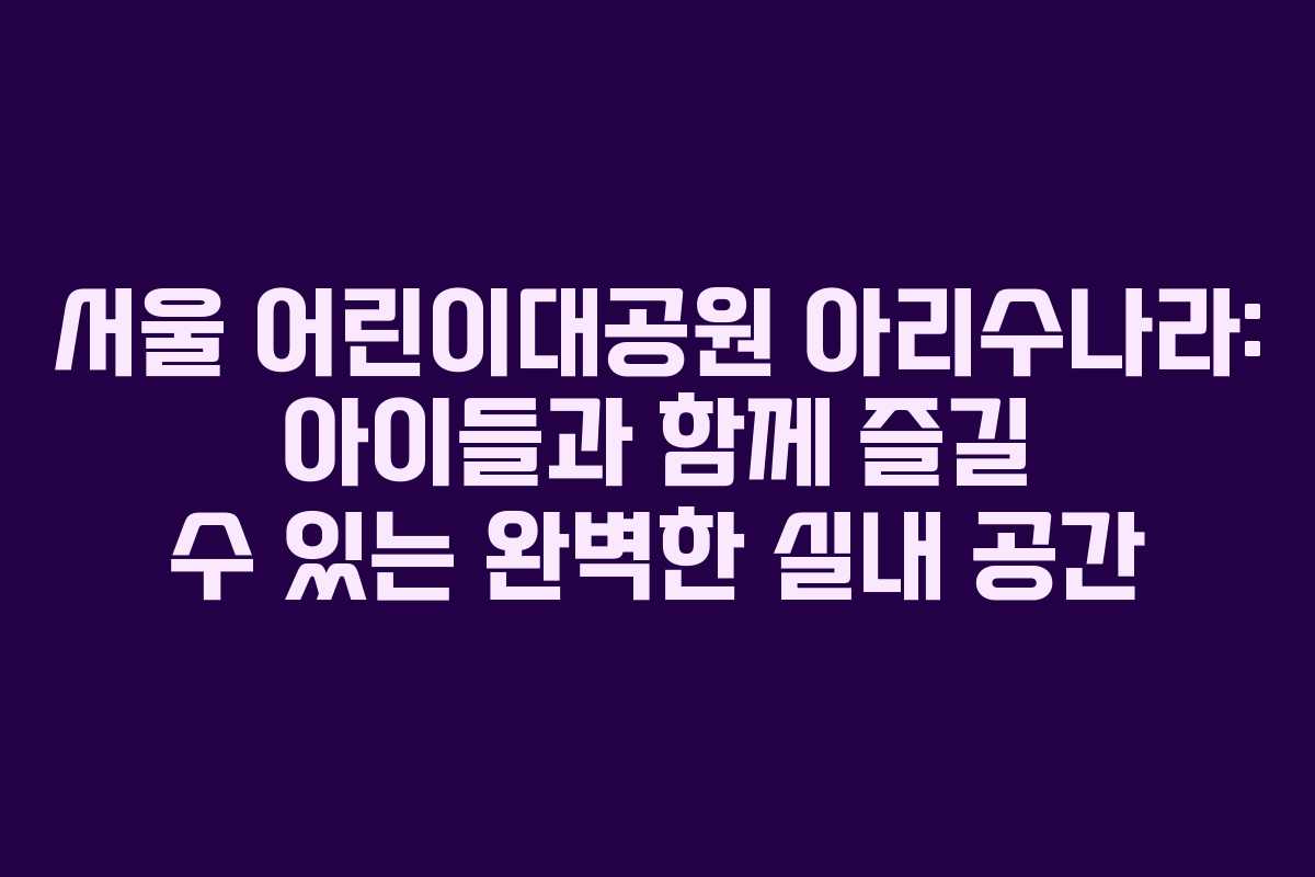 서울 어린이대공원 아리수나라: 아이들과 함께 즐길 수 있는 완벽한 실내 공간