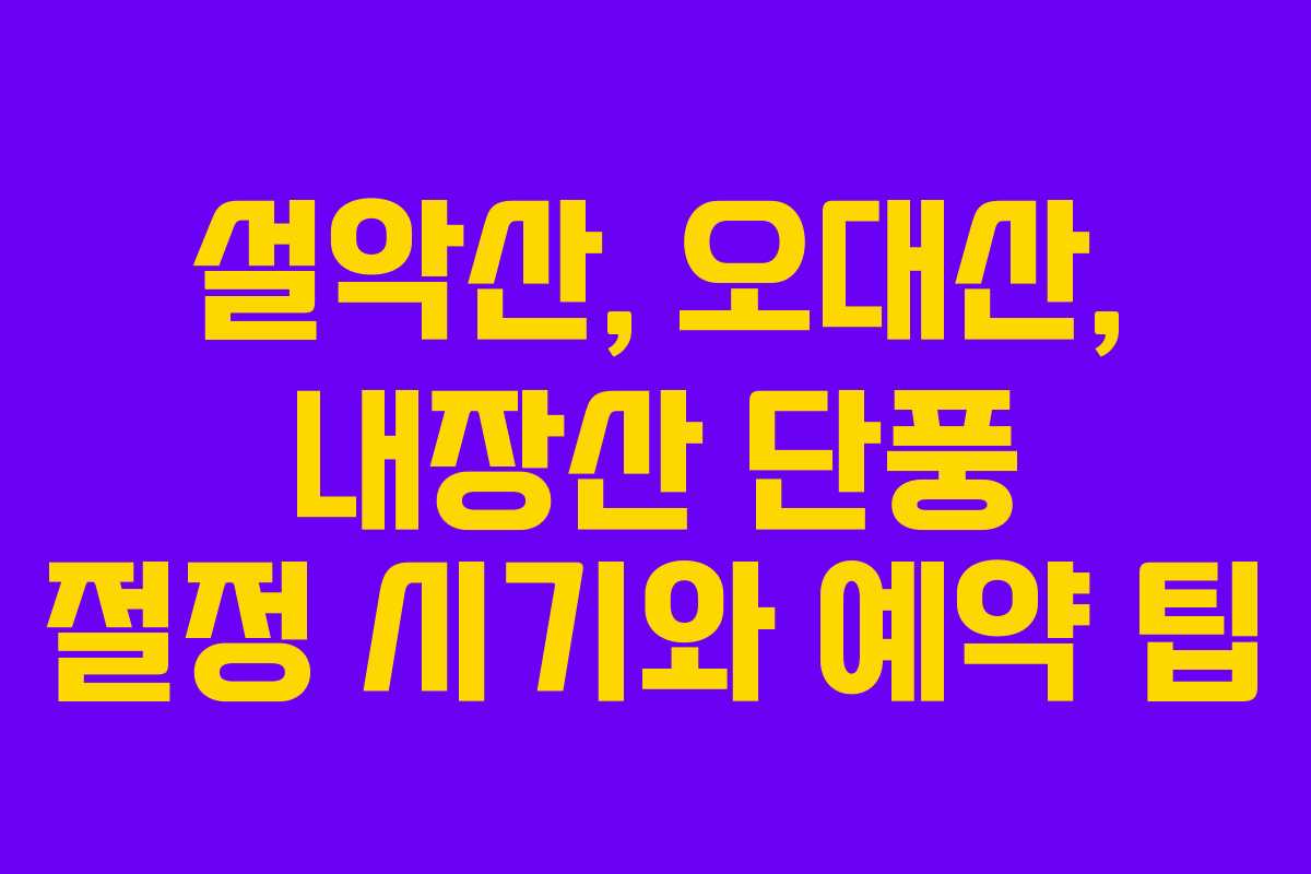 가을이 다가오면 단풍을 즐기기 위한 여행 계획을 세우는 분들이 많습니다. 특히 설악산, 오대산, 내장산은 아름다운 단풍 명소로 손꼽히며, 이들 지역의 단풍 절정 시기와 예약 팁을 알아보겠습니다.
