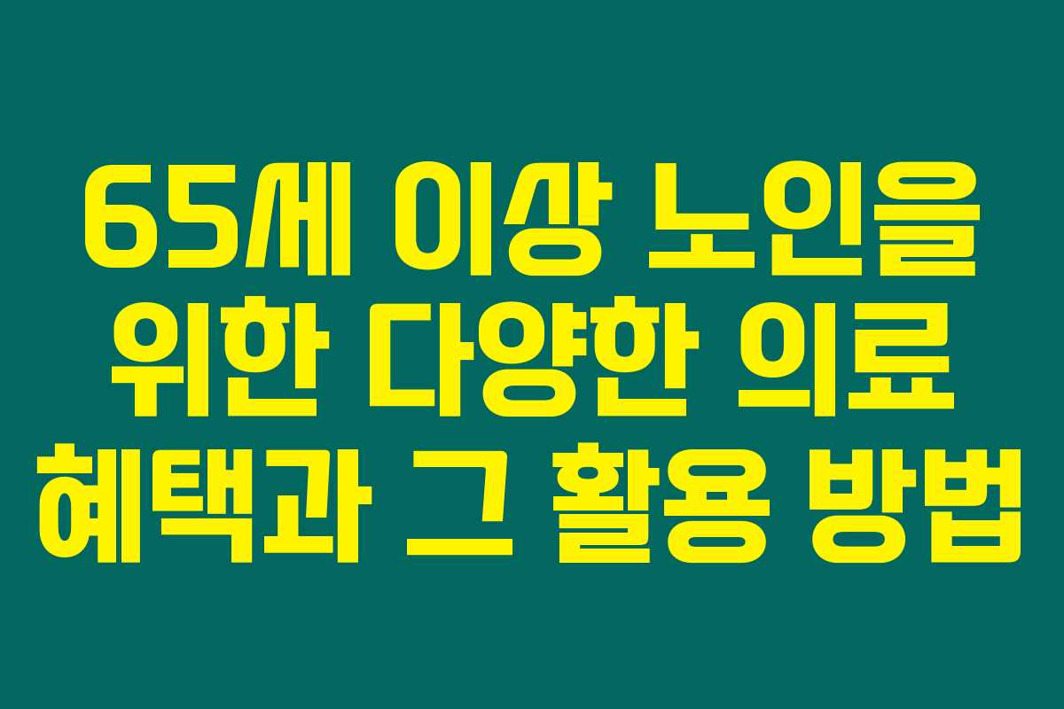 제가 직접 리서치한 바로는, 65세 이상의 노인들은 정부와 지자체에서 제공하는 다양한 의료 혜택을 통해 건강한 노후를 지속적으로 지원받고 있습니다. 이러한 혜택을 통해 많은 노인들이 보다 경제적인 부담 없이 필요한 의료 서비스를 이용할 수 있다고 해요. 아래를 읽어보시면 2024년 기준으로 제공되는 주요 의료 지원 제도와 혜택에 대한 상세한 정보를 확인하실 수 있습니다.