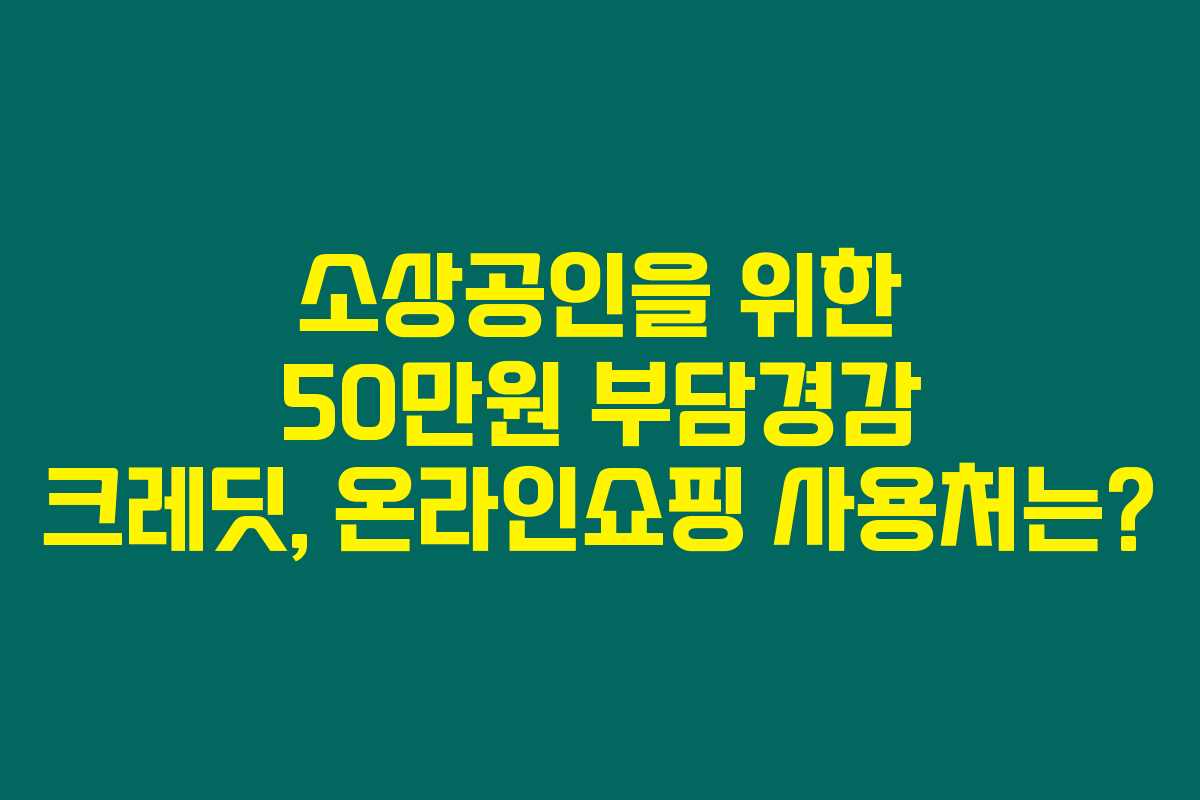 2025년부터 시작되는 소상공인 50만원 부담경감 크레딧 제도에 대해 궁금하신가요? 소상공인이라면 꼭 아셔야 할 이 제도에 대해 아래를 읽어보시면, 얼마나 유용하게 활용할 수 있는지 확인할 수 있을 거예요. 특히 온라인쇼핑 가능 여부에 대해 궁금한 분들은 필독입니다.
