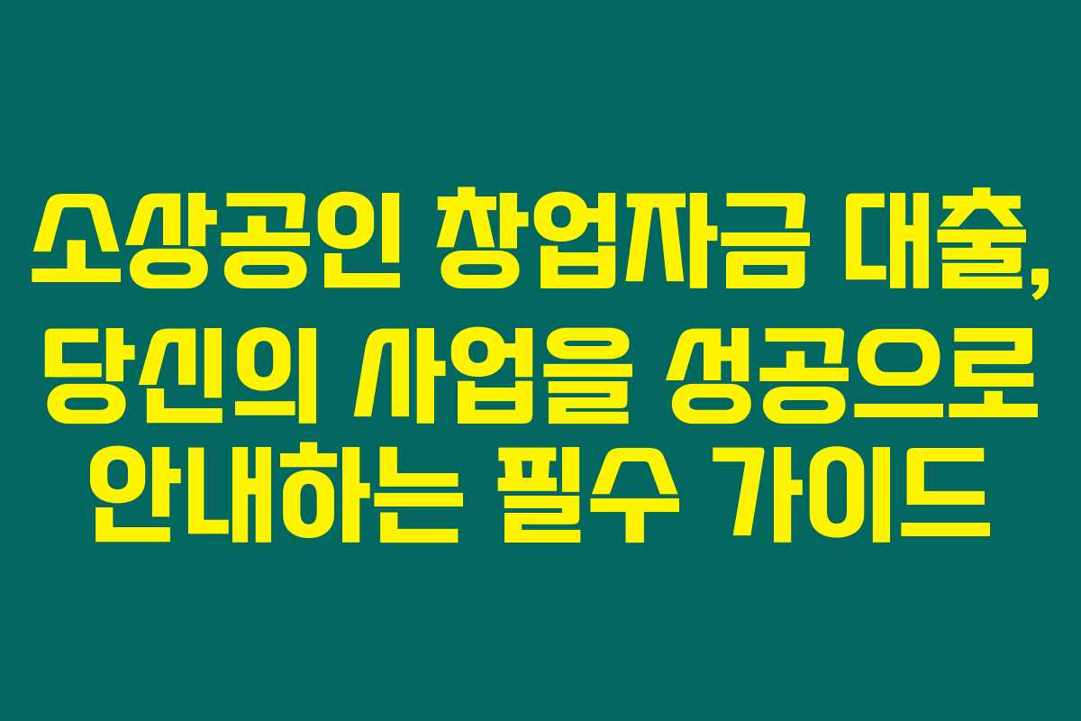 소상공인 창업자금 대출, 당신의 사업을 성공으로 안내하는 필수 가이드