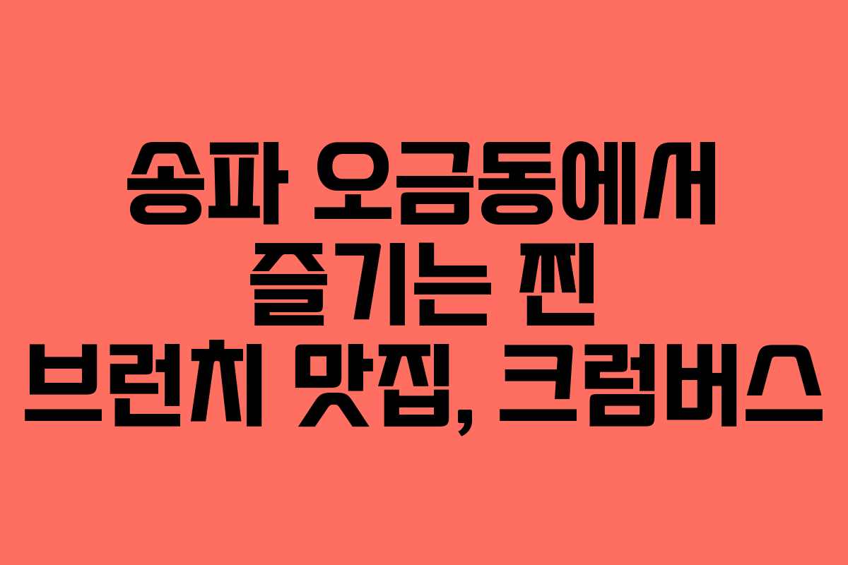 서울 송파구 오금동에 위치한 크럼버스는 맛있는 브런치를 즐길 수 있는 핫플레이스입니다. 이곳은 올림픽공원과 가까워 식사 후 산책하기에 안성맞춤인 점도 큰 매력입니다. 넓은 매장과 편안한 분위기의 테라스가 있어 친구들과의 모임이나 가족과의 외식에 적합한 장소입니다. 특히, 2026년 현재 브런치 문화가 활성화되면서 크럼버스는 더욱 인기를 끌고 있습니다.