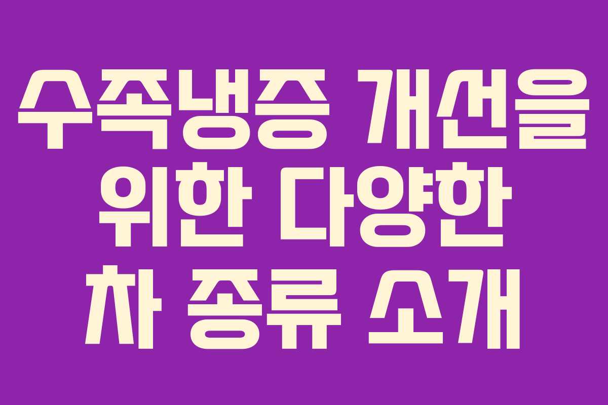 다양한 차들이 수족냉증 완화에 기여할 수 있으며, 각각의 차가 지닌 효능은 다르다. 아래 표는 수족냉증에 좋은 차 종류와 그 효능을 비교한 것이다.
