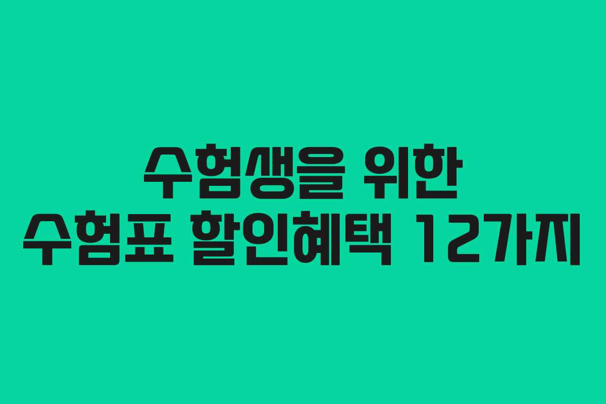 수험생들은 대입 수학능력시험을 치른 후 다양한 할인 혜택을 받을 수 있습니다. 이번 포스팅에서는 특히 주목할 만한 12가지 수험표 할인 혜택을 정리해 보았습니다. 각 할인 혜택의 기간과 방법을 확인하여 알뜰하게 이용해 보세요.