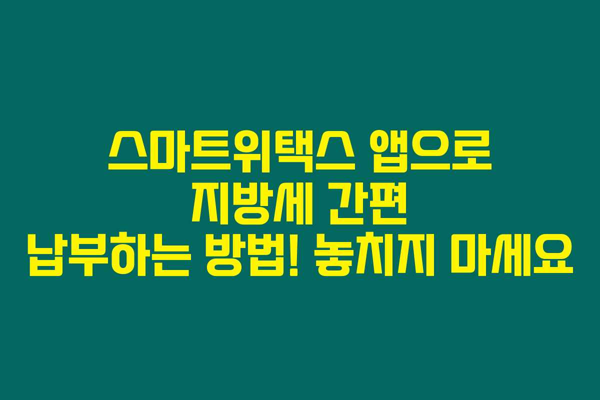 전국 지방세 납부에 고민 많으신 분이라면, 스마트위택스 앱으로 빠르고 간편하게 해결할 수 있습니다.는 앱을 통해 언제 어디서든 손쉽게 지방세를 납부할 수 있답니다. 이 앱을 사용해야 하는 이유와 방법을 알고 싶으신가요? 그럼 아래를 읽어보시면 스마트위택스 앱의 모든 면모를 살펴볼 수 있습니다.