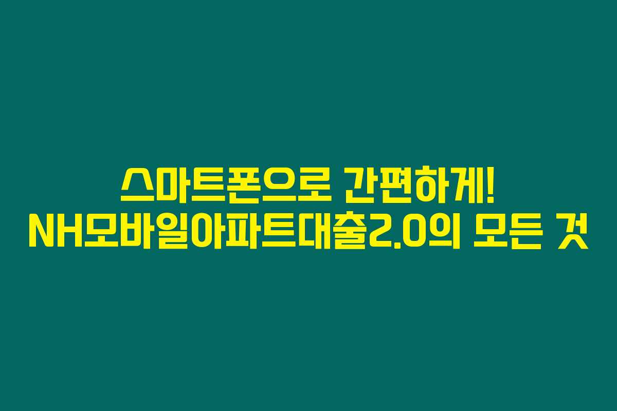 NH모바일아파트대출2.0은 농협은행 방문 없이 스마트폰으로 간편하게 신청할 수 있는 모바일 전용 아파트 담보대출 상품이에요.
