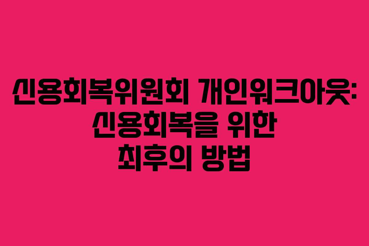 신용회복위원회 개인워크아웃은 경제적 어려움을 겪고 있는 분들에게 큰 도움이 될 수 있는 제도입니다. 채무 문제로 고통받고 있다면, 꼭 상담을 받아보시기 바랍니다.
