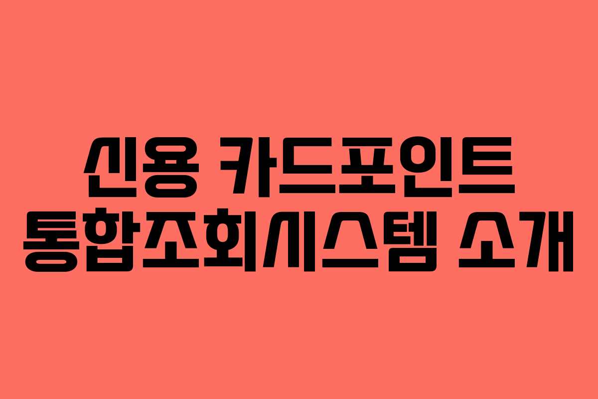 신용카드 포인트를 효율적으로 관리할 수 있는 통합조회시스템이 도입되었습니다. 이 시스템은 카드별 포인트를 한꺼번에 조회할 수 있는 기능을 제공하여, 사용자들이 자신의 포인트를 쉽게 확인하고 활용할 수 있도록 돕고 있습니다.