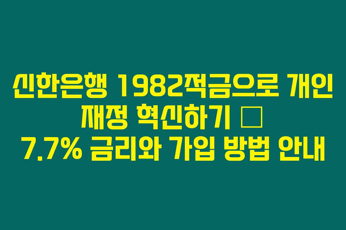 제가 직접 리서치한 바로는, 신한은행의 1982적금은 매력적인 7.7% 금리와 다채로운 혜택으로 많은 사람들의 관심을 끌고 있어요. 이 적금 상품은 지난 1982년 KBO 리그의 시작을 기념하며 탄생했으며, 개인과 개인사업자 모두에게 제공되는 자유적립식 상품입니다. 아래를 읽어보시면 이 적금의 가입 조건과 다양한 혜택, 이벤트 내용에 대해 자세히 알 수 있을 거예요.