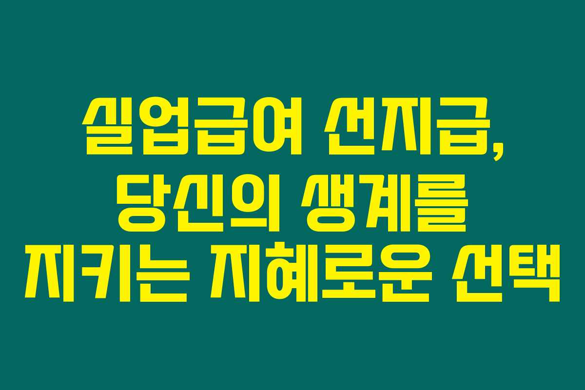 실업급여 선지급, 당신의 생계를 지키는 지혜로운 선택