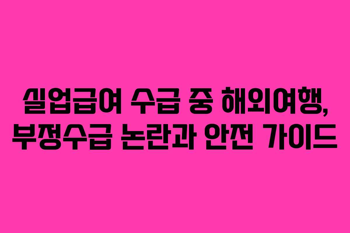 실업급여는 재취업을 지원하기 위해 마련된 제도로, 수급자는 적극적인 구직 활동을 해야 합니다. 따라서 해외여행을 고려할 때는 이러한 조건을 반드시 염두에 두어야 합니다.