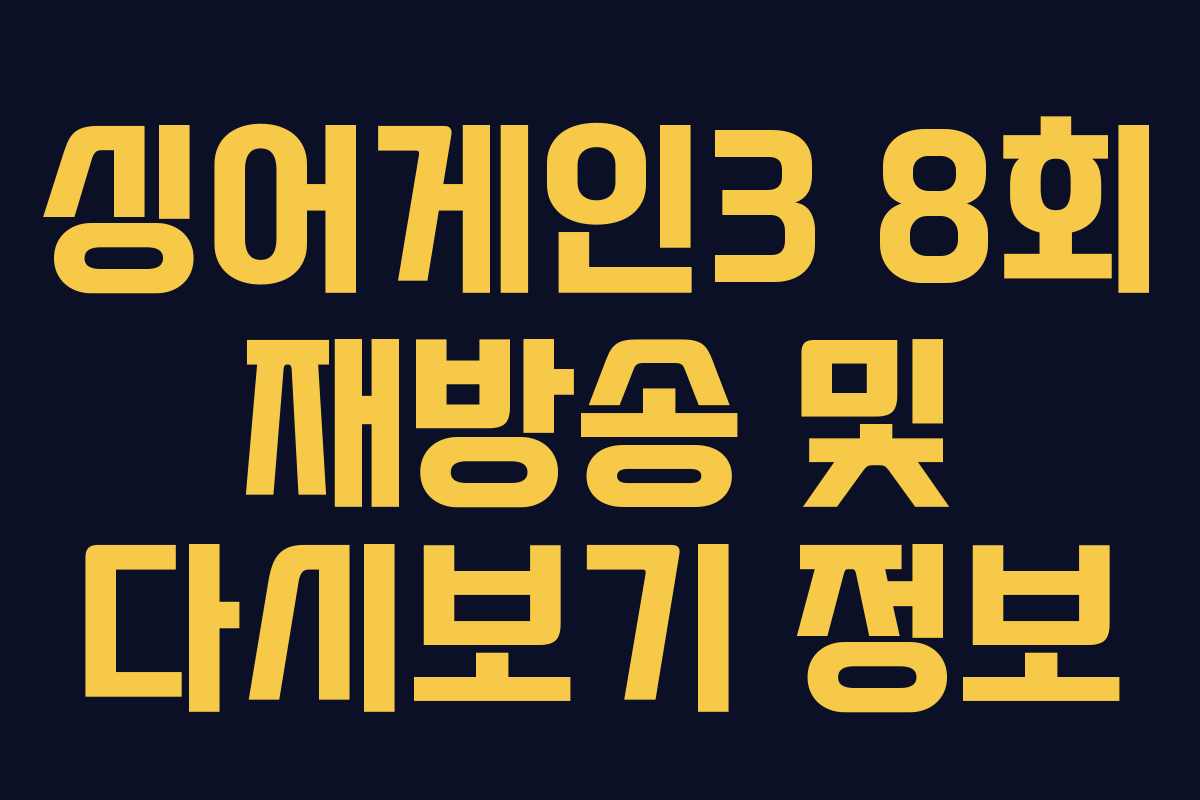 최근 방송된 싱어게인3의 8회는 많은 시청자들의 관심을 받고 있습니다. 이번 포스팅에서는 싱어게인3 8회의 재방송 및 다시보기 방법, 회차 정보, 편성 정보, 시청률 등을 안내하겠습니다.