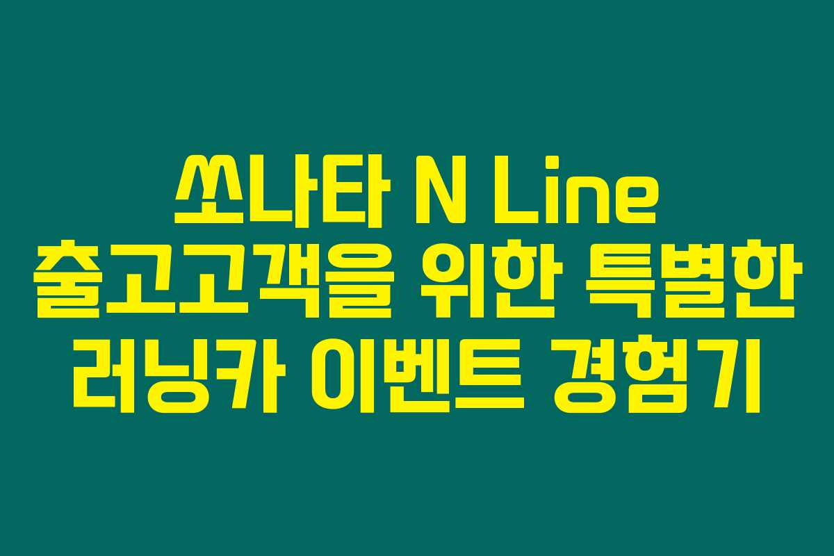 현대자동차의 쏘나타 N Line 출고 고객을 위한 특별 이벤트가 진행되고 있어요. 이 이벤트는 자동차에 대한 열정을 가진 고객들에게 훌륭한 경험을 제공하기 위해 마련되었습니다. 아래를 읽어보시면, 어떤 혜택이 제공되는지, 그리고 어떻게 참여할 수 있는지에 대해 자세히 알게 될 거예요.