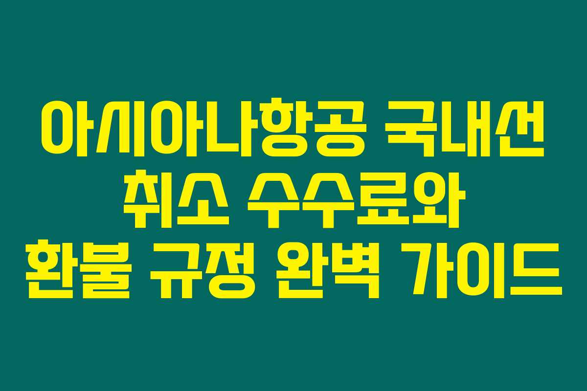아시아나항공의 국내선 항공권을 취소해야 할 일이 있으신가요? 그렇다면 항공권 취소 시 발생하는 수수료와 환불 규정에 대해 반드시 알아두셔야 합니다. 예기치 못한 일정 변경으로 많은 분들이 항공권을 취소하거나 변경해야 하는 경우가 많죠. 아래를 읽어보시면 아시아나항공의 국내선 취소 수수료와 환불 규정, 그리고 이를 최소화할 수 있는 방법이 자세히 설명되어 있으니 반드시 확인해보세요!