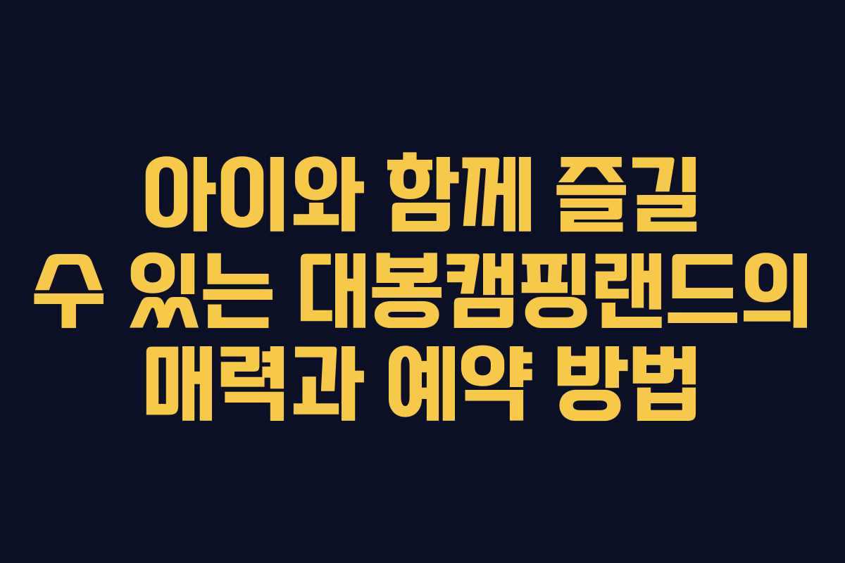 대봉캠핑랜드는 자연 속에서 아이들과 함께 특별한 추억을 만들 수 있는 최적의 장소입니다. 자가발전 모노레일과 초대형 그물 놀이터가 있어 아이들이 즐길거리가 가득합니다. 이번 포스팅에서는 대봉캠핑랜드의 매력적인 숙소와 예약 방법에 대해 자세히 알아보겠습니다.