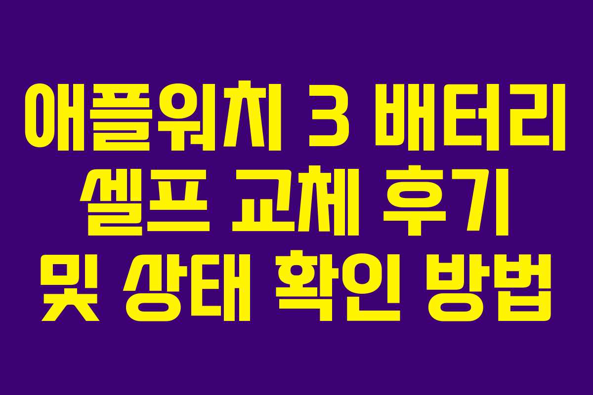 애플워치 3는 2017년에 출시된 모델로, 5년 이상 사용한 결과 배터리 성능 저하를 경험하게 되었습니다. 이번 포스트에서는 애플워치 3의 배터리를 셀프 교체한 후기를 공유하고, 배터리 상태를 확인하는 방법을 안내하겠습니다.