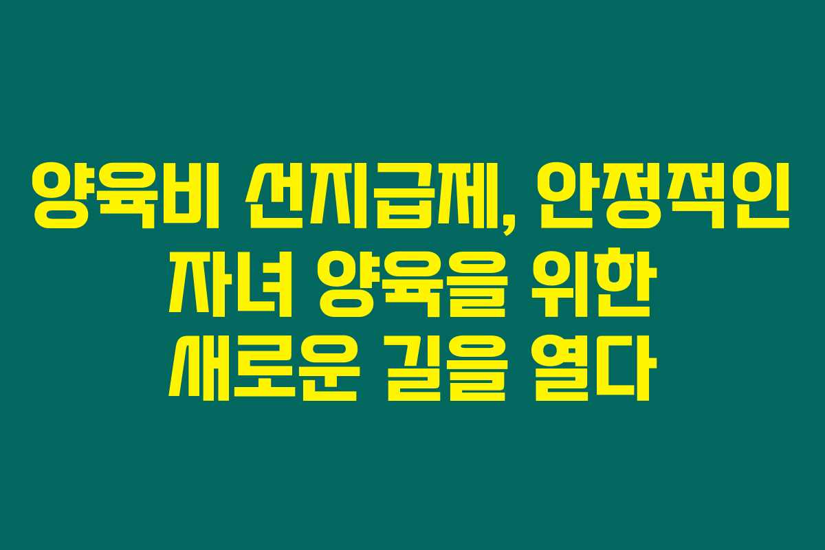 양육비 선지급제는 무엇이며 왜 중요한가요?