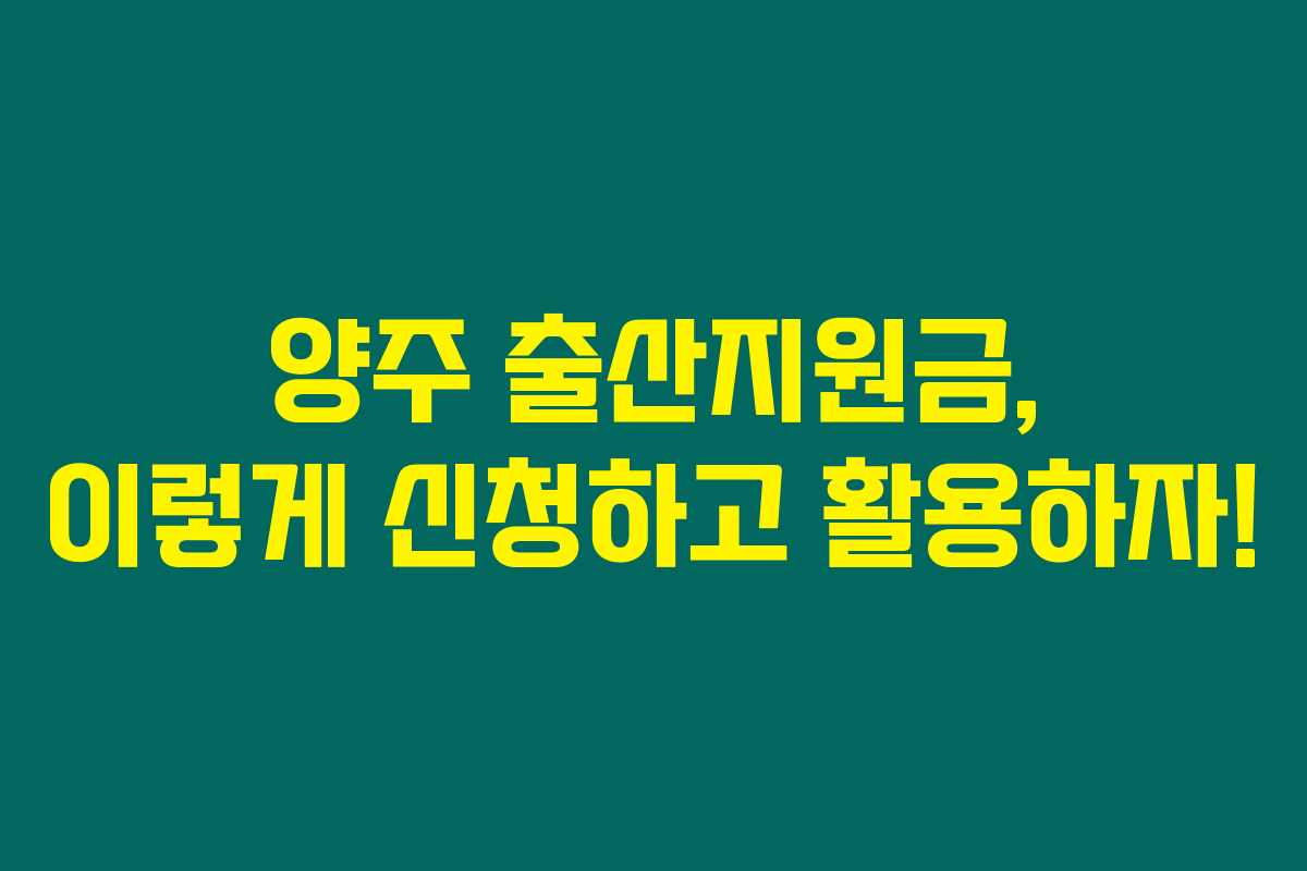 양주 출산지원금, 이렇게 신청하고 활용하자!