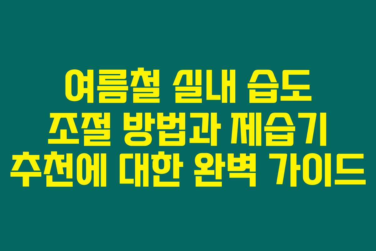 - 여름철 실내 습도 조절이 왜 중요한가요?