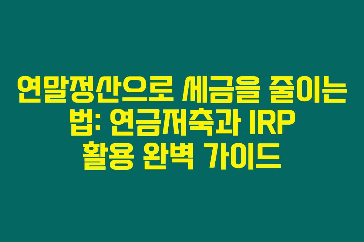 연말정산으로 세금을 줄이는 법: 연금저축과 IRP 활용 완벽 가이드