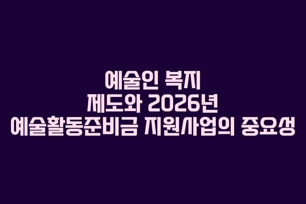 예술인 복지 제도는 창작자들이 경제적인 어려움 없이 지속적으로 창작 활동을 이어갈 수 있도록 돕는 핵심적인 프로그램입니다. 특히, 예술활동준비금, 즉 창작준비금 지원사업은 문화체육관광부와 한국예술인복지재단이 주관하여 예술인들에게 필요한 지원을 제공합니다. 본 내용에서는 2026년 기준으로 업데이트된 예술활동준비금 지원사업의 세부 사항을 다루고자 합니다.