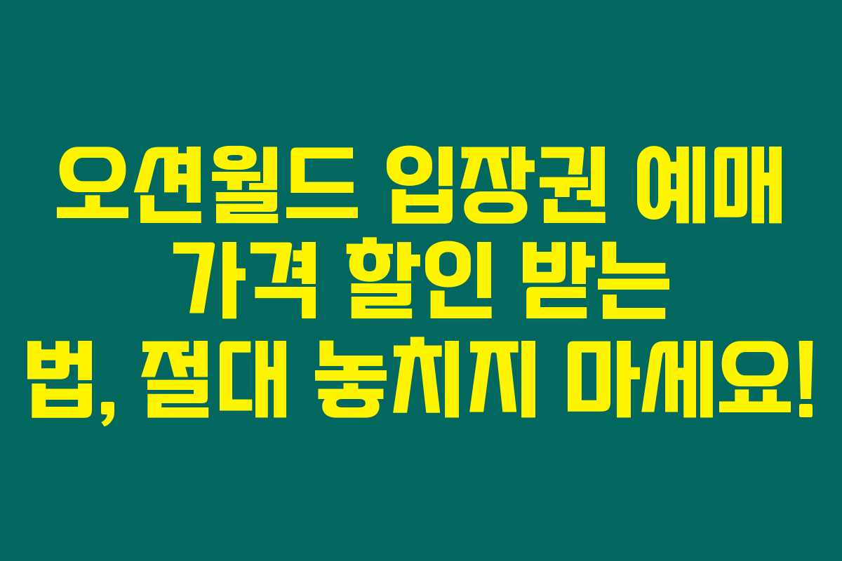오션월드 입장권을 예매하려고 고민하고 있는 분들이 많을 텐데요. 할인된 가격으로 입장권을 구매할 수 있는 꿀팁 알고 계신가요? 오션월드를 계획하고 있다면, 아래를 읽어보시면 절대로 후회하지 않을 놀라운 정보들을 만나보실 수 있답니다.