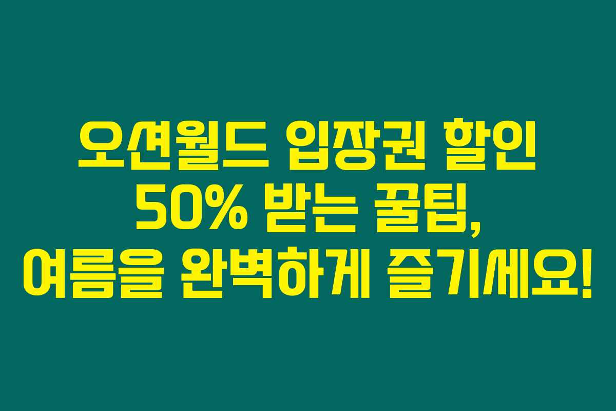뜨거운 여름이 오면 시원한 워터파크를 찾게 되죠. 오션월드는 여름의 즐거움을 만끽할 수 있는 최고의 장소에요. 하지만 높은 입장료 때문에 가는 게 망설여지신다면, 꼭 확인해야 할 꿀팁이 있어요. 어떻게 하면 2024년 최신 정보로 오션월드 입장권을 최대 50% 할인받을 수 있을까요? 아래를 읽어보시면 그 방법을 자세히 안내드릴게요!