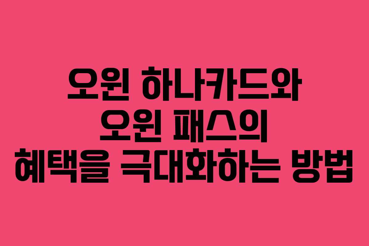 - 오윈 하나카드 혜택을 최대한 활용하는 방법