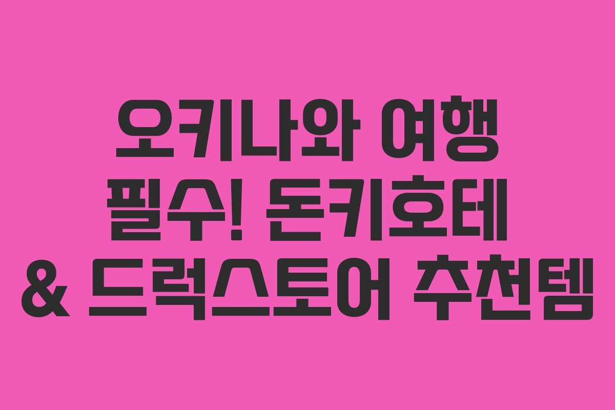 오키나와 여행에서 돈키호테와 드럭스토어 쇼핑은 놓칠 수 없는 즐거움입니다. 알뜰한 쇼핑을 즐기시길 바랍니다!