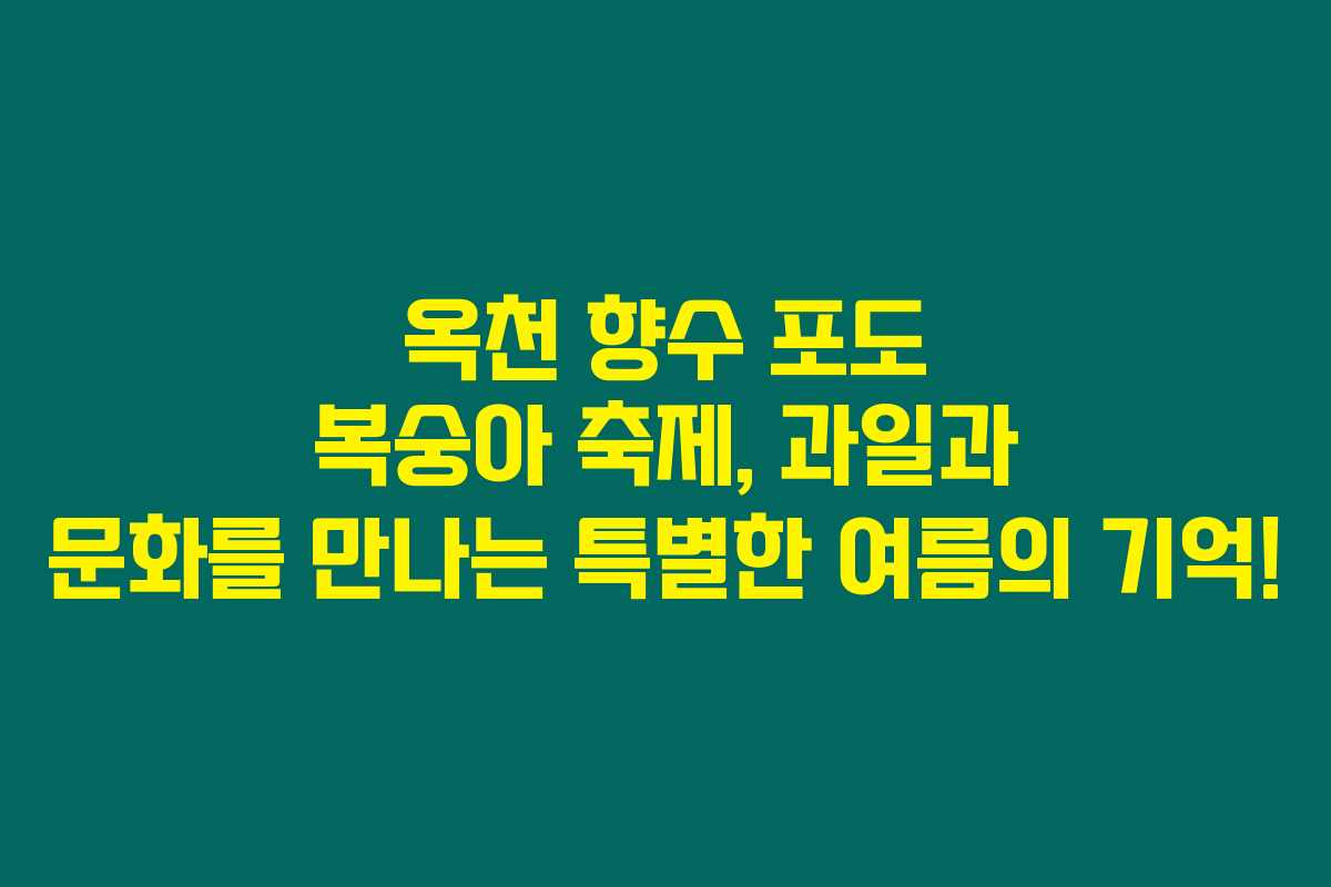 옥천 향수 포도 복숭아 축제는 그저 과일을 즐기는 장소가 아니라, 가족과 함께 소중한 추억을 쌓고 지역 문화를 경험할 수 있는 특별한 기회랍니다. 이번 여름, 옥천의 자연과 문화를 만끽하며 뜨거운 여름을 보내보는 건 어떨까요? 많은 분들이 이 축제를 함께 즐기기를 바랍니다!