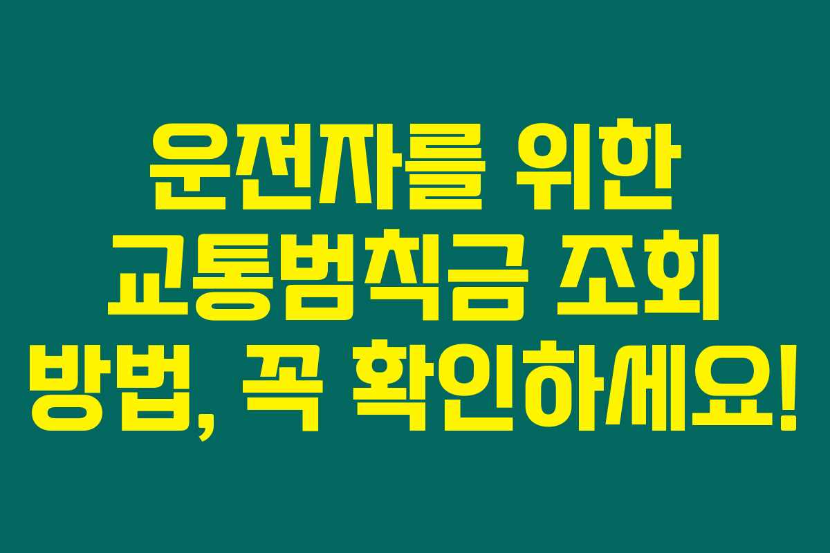 이렇게 교통범칙금 조회 방법과 도움되는 정보들을 알아보았어요. 운전자는 언제나 안전 운전과 법규 준수를 잊지 말아야 합니다!