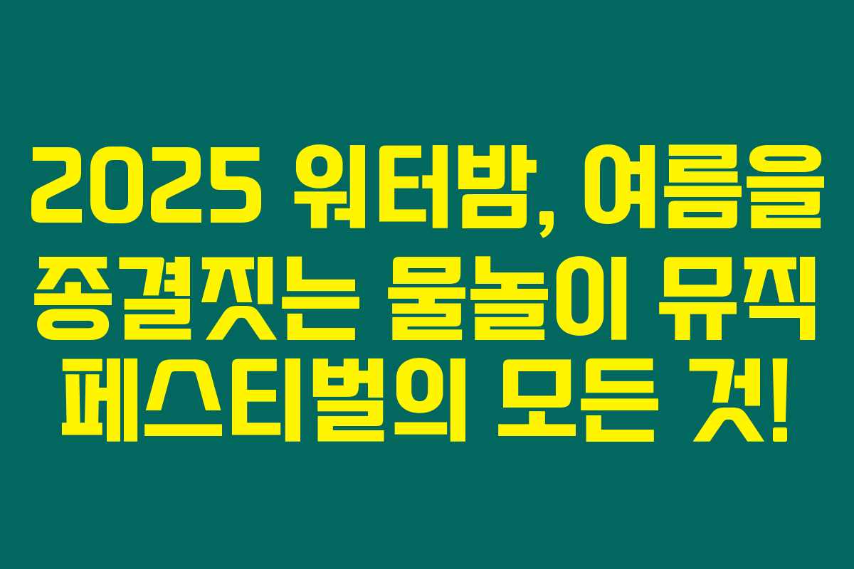 뜨거운 여름을 맞이하여, 물과 음악이 만나는 환상적인 순간이 여러분을 기다리고 있습니다. 2025 워터밤은 서울, 부산, 속초에서 열리며, 매년 최고의 아티스트들과 함께 더욱 화려한 무대를 약속하고 있어요. 아래를 읽어보시면, 각 도시별 일정과 라인업, 그리고 성공적인 티켓 예매 전략까지 모든 핵심 정보를 알아볼 수 있습니다!