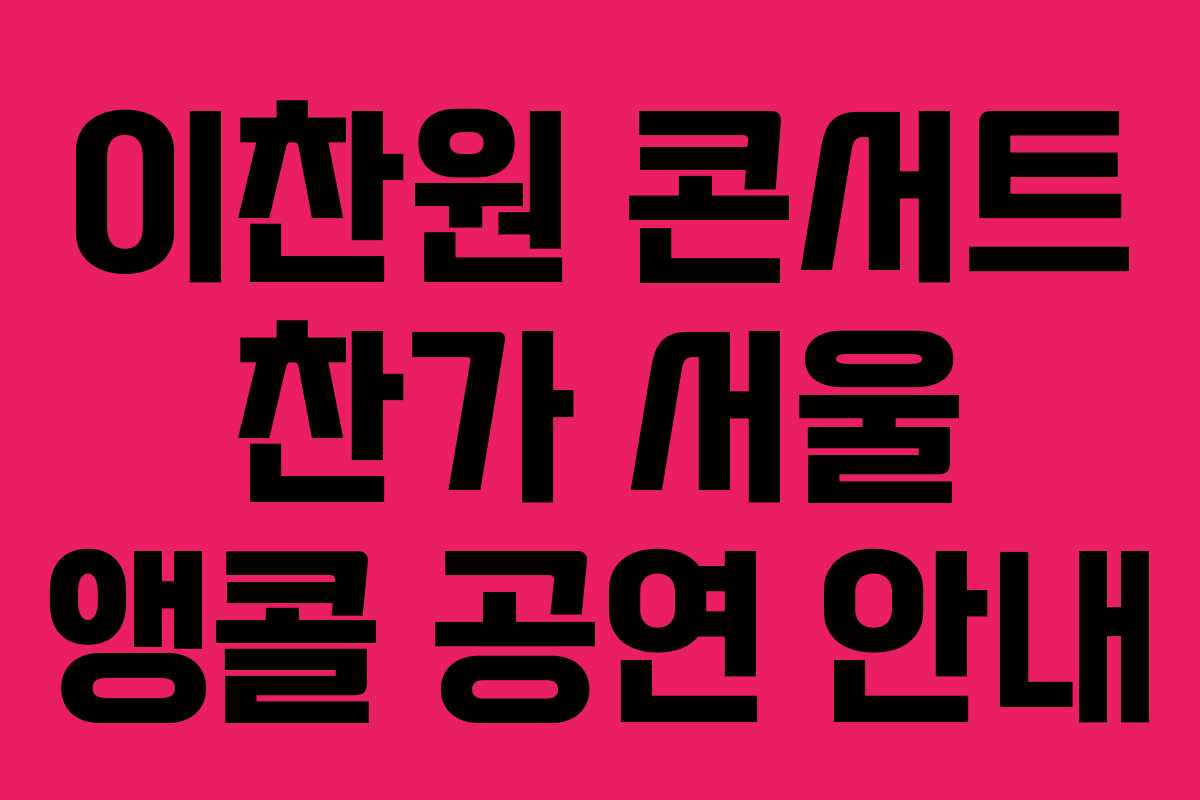 이찬원 님의 ‘찬가(燦歌)’ 서울 앵콜 콘서트는 2024년 12월 13일부터 15일까지 올림픽공원 체조경기장(KSPO DOME)에서 개최됩니다. 이번 공연은 6월부터 시작된 전국 투어의 연장선으로, 팬들에게 큰 사랑을 받고 있는 공연입니다.
