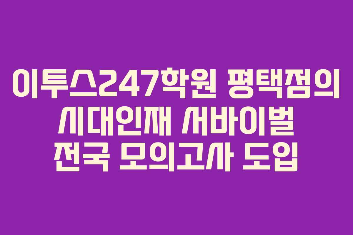 이투스247학원 평택점에서는 학생들에게 더 나은 학습 경험을 제공하기 위해 새로운 콘텐츠를 도입했습니다. 바로 작년 수능 만점자가 출현한 시대인재 서바이벌 전국 모의고사입니다. 이제 평택점에서도 이 특별한 모의고사를 경험할 수 있게 되었습니다.