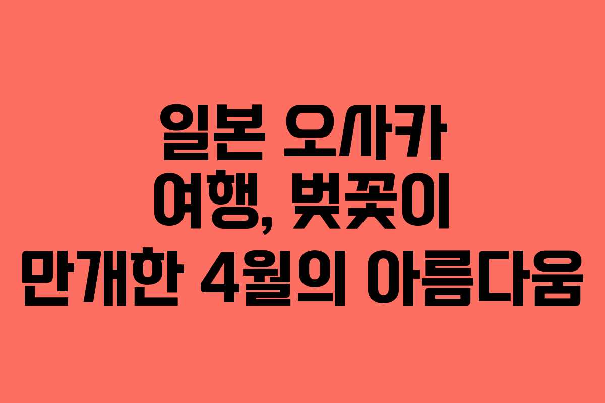 2026년 3월, 오사카는 벚꽃이 만개하여 많은 여행객들에게 매력을 발산하는 시기다. 이 시기에 오사카를 방문하면 아름다운 풍경과 다양한 먹거리를 경험할 수 있다. 특히 JR PASS를 이용한 교통 편의성과 다양한 현지 맛집을 방문할 수 있는 기회를 놓치지 말아야 한다. 이번 여행은 그 아름다움을 감상하고 즐길 수 있는 완벽한 기회가 될 것이다.