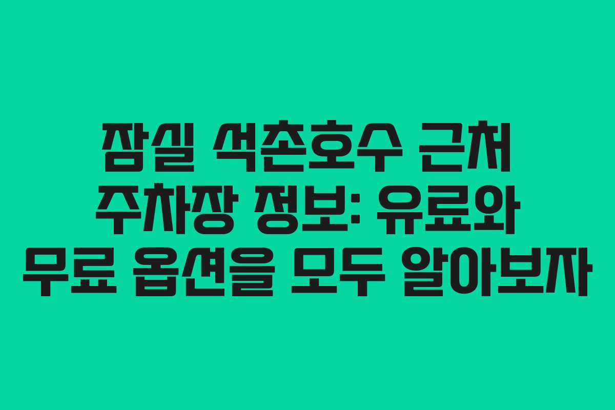잠실 석촌호수 근처 주차장 정보: 유료와 무료 옵션을 모두 알아보자