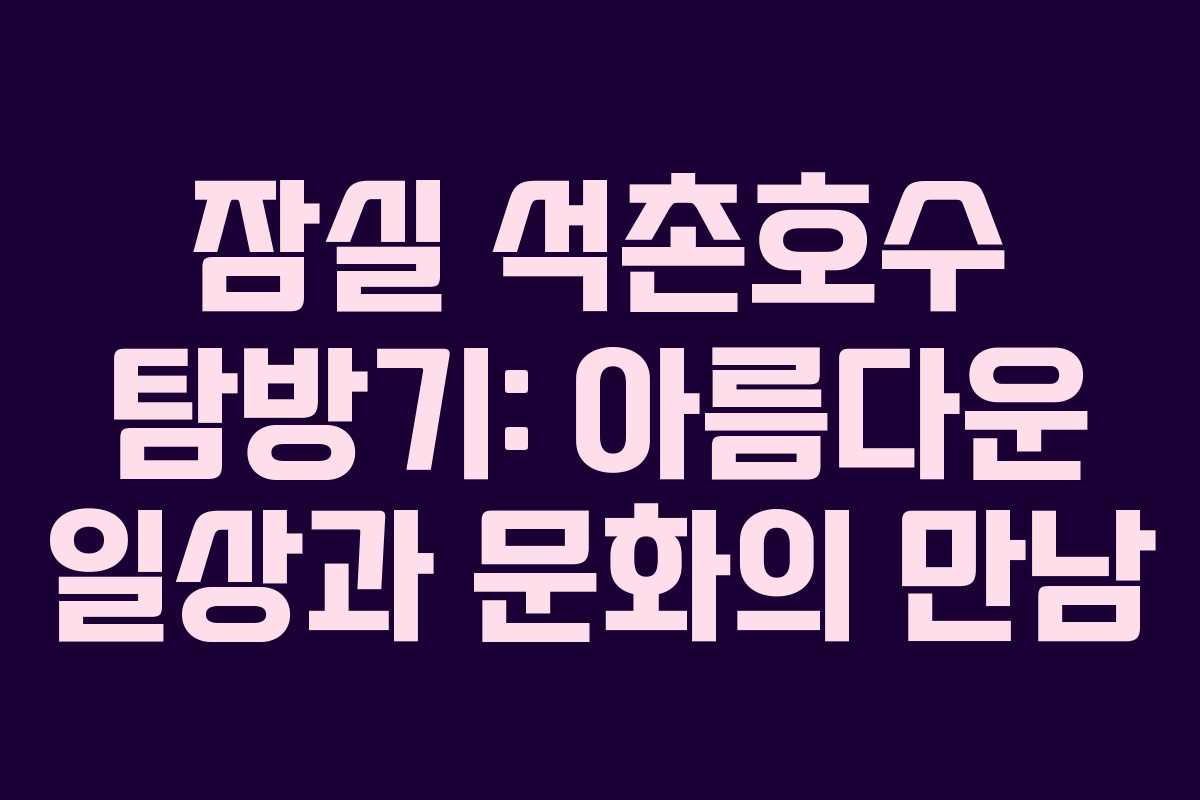 이러한 문화 행사들은 석촌호수를 찾는 이유가 하나 더 늘어나는 것이며, 서울 시민들이 자연과 문화의 조화를 느낄 수 있는 기회를 제공합니다.