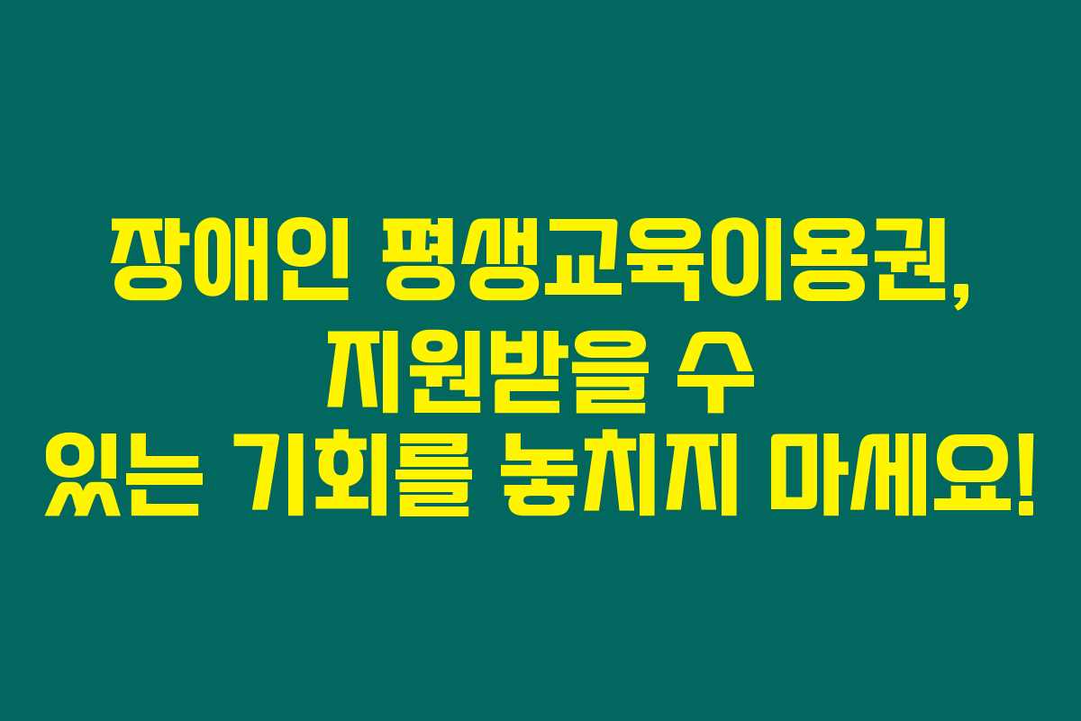 많은 정보를 통해 도움이 되셨길 바라며, 장애인 평생교육이용권은 여러분에게 유익한 기회가 될 것입니다. 더 많은 분들이 이 혜택을 받아서 새로운 배움을 통해 삶의 질을 높일 수 있기를 바랍니다.