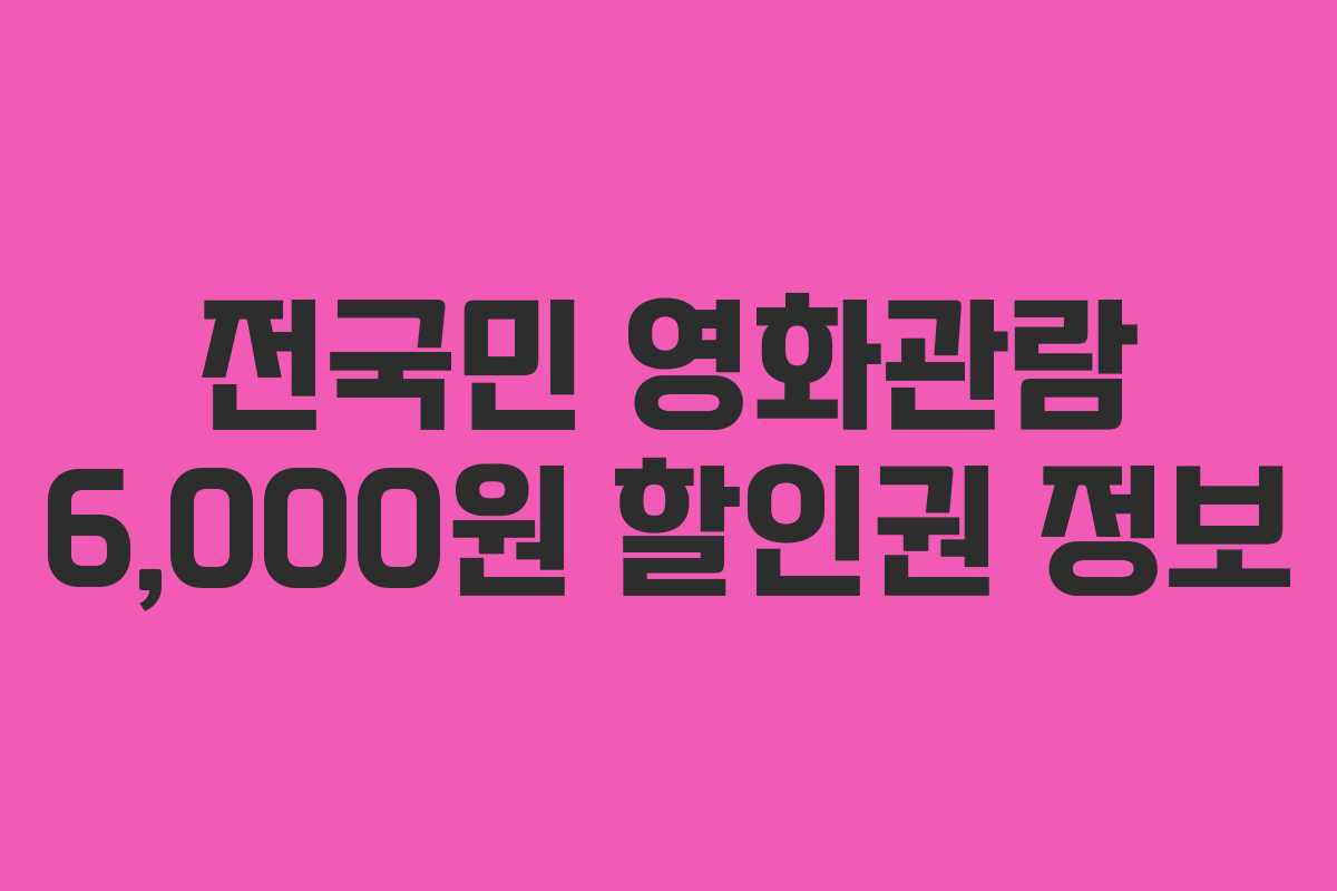 정부가 전국민을 대상으로 영화 관람 시 6,000원 할인 혜택을 제공하는 캠페인을 시작했습니다. 영화 관람 비용이 부담스러웠던 많은 분들에게 반가운 소식이 아닐 수 없습니다. 문화체육관광부와 영화진흥위원회가 주관하는 이 할인 이벤트는 선착순으로 450만 명에게 제공됩니다.