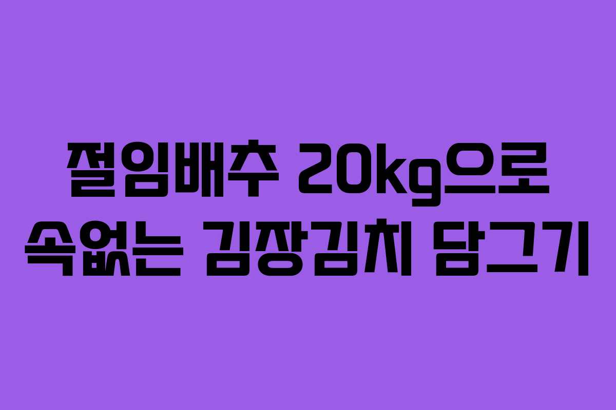 절임배추로 만드는 속없는 김장김치는 많은 이들에게 사랑받는 전통 음식입니다. 오늘은 20kg의 절임배추를 사용하여 깔끔하고 맛있는 김치 담그는 법을 소개합니다. 김장 시기를 맞아 간편한 레시피로 여러분의 김치 담그기를 도와드리겠습니다.